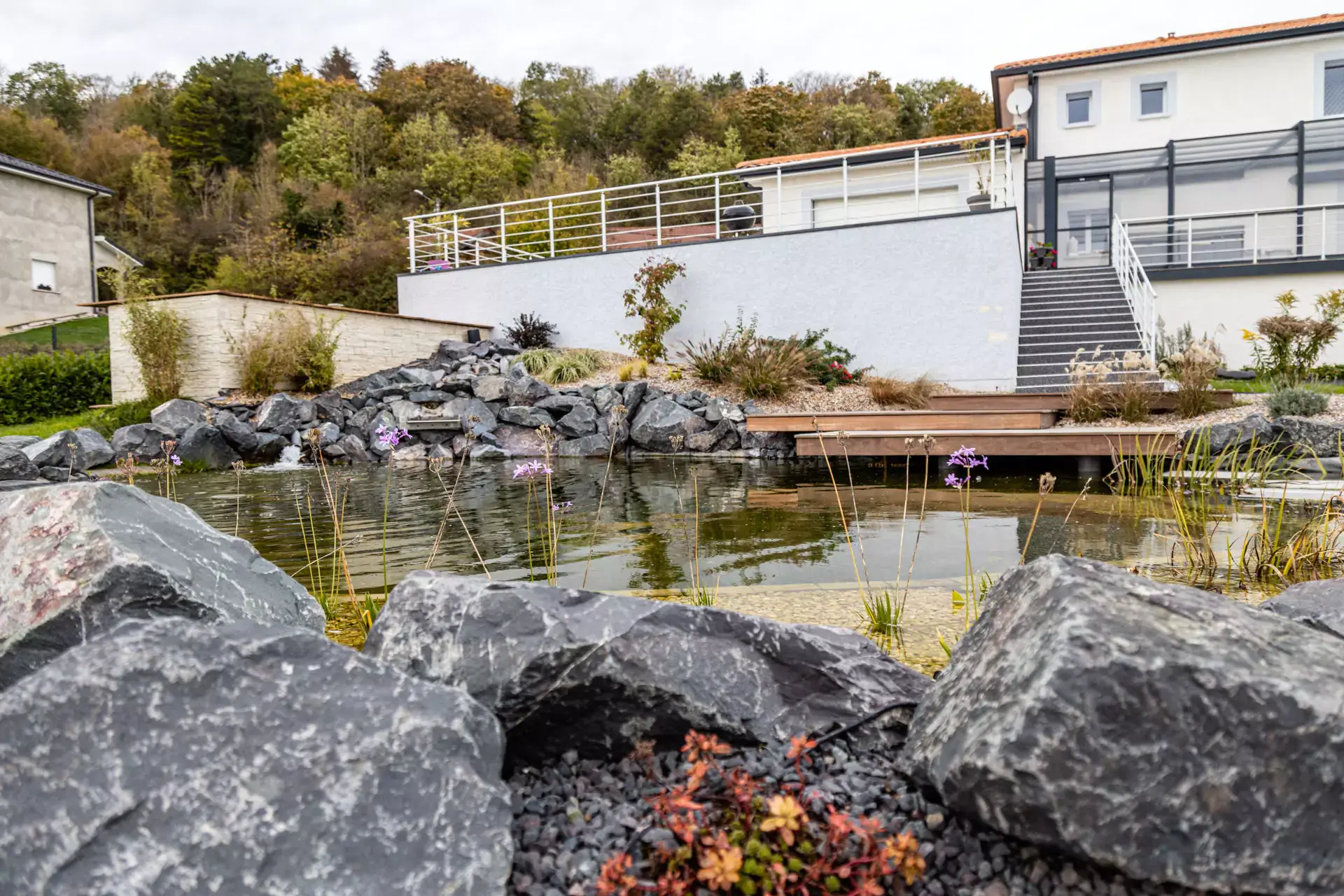 - Travaux de terrassement : coulage de dalles pour terrasses, bassins ornementaux